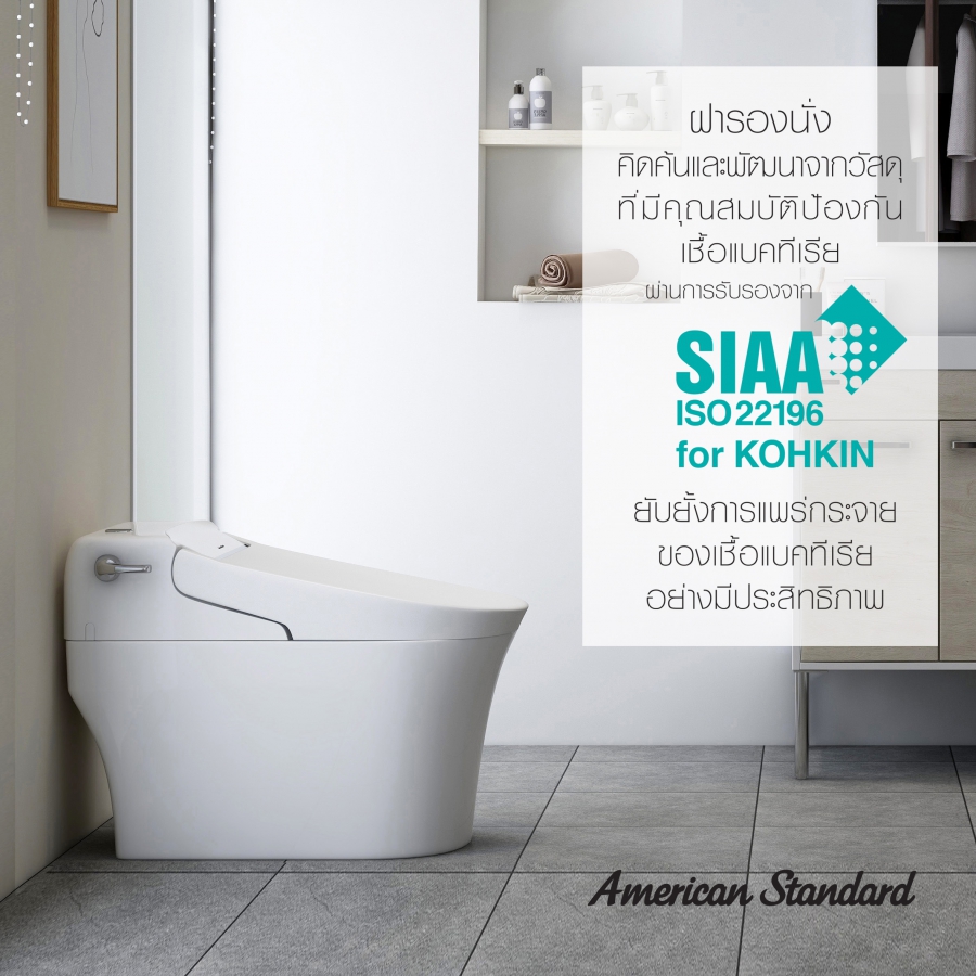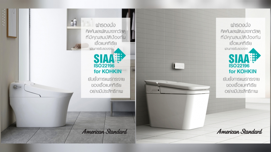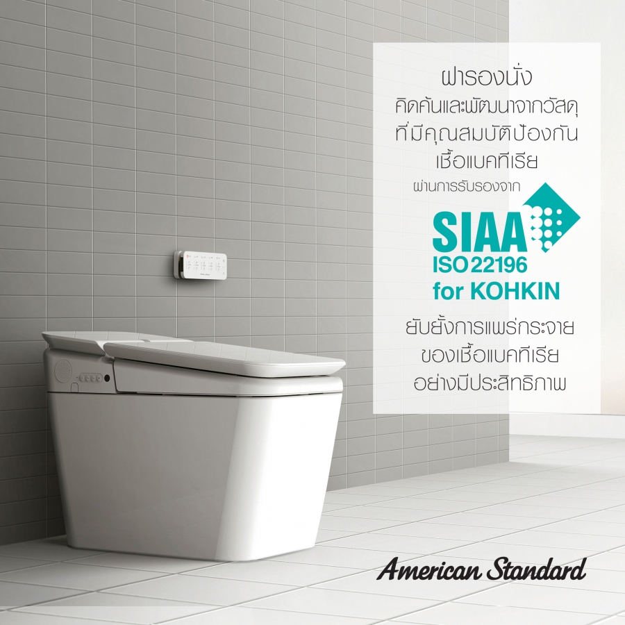 อเมริกันสแตนดาร์ด แบรนด์สุขภัณฑ์ชั้นนำระดับโลก แนะนำฝารองนั่งของโถสุขภัณฑ์ อเมริกันสแตนดาร์ดที่ผ่านการคิดค้นและพัฒนามาจากวัสดุที่มีคุณสมบัติป้องกันเชื้อแบคทีเรีย (Anti-Bacterial Protection) และยังผ่านการรับรองจาก Society of Industrial Technology for Antimicrobial Articles หรือ SIAA ISO 22196 for KOHKIN ว่ามีประสิทธิภาพในการยับยั้งการแพร่กระจายของเชื้อแบคทีเรียบนพื้นผิวฝารองนั่งได้ โดยการดำเนินการจัดการคุณภาพ ภายใต้ระบบการประเมิน ISO 22196