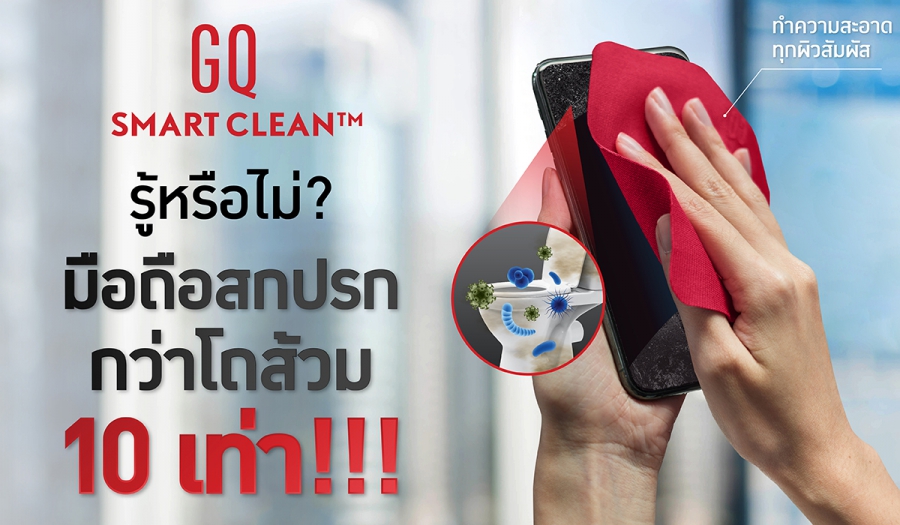 GQ Smart Clean™ จึงเข้ามาตอบโจทย์ตรงนี้ เพราะเป็นผ้าไมโครไฟเบอร์สำหรับเช็ดทำความสะอาดพื้นผิวที่ทำจากผ้าไมโครไฟเบอร์คุณภาพสูง ผสานนวัตกรรมที่ช่วยให้ทำความสะอาดอย่างล้ำลึกใน 3 ขั้นตอน ทั้งในระดับที่มองเห็นและมองไม่เห็น ดีไซน์ขนาดเล็ก มาพร้อมห่วงไว้มัดเก็บหรือใช้คล้องเพื่อการพกพาสะดวก ซักได้หลายครั้ง ผ้านิ่ม ไม่ทิ้งรอย ไม่มีขุย เช็ดได้หลายพื้นผิว ทั้งมือถือ แว่นตา เลนส์กล้อง นาฬิกา ลูกบิดประตู ของเล่นเด็ก และอื่นๆ อีกมากมาย เเละนี่คือเหตุผลว่าทำไมต้องเป็น GQ Smart Clean™ ผ้าไมโครไฟเบอร์จาก GQ Apparel อินโนเวชั่นสุดล้ำ มาพร้อม 5 ฟีเจอร์สุดเจ๋ง!