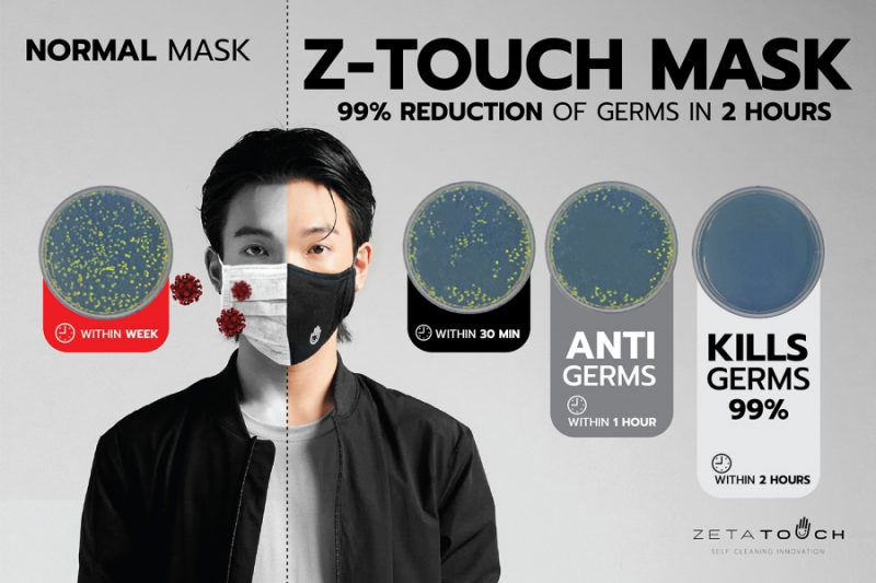 พร้อมทั้งได้รับการรับรองผลการทดสอบการฆ่าเชื้อแบคทีเรีย ไวรัส และ ไวรัสโคโรน่า สายพันธุ์ใหม่ จากหลายสถาบันชั้นนำทั้งในและต่างประเทศ อาทิ OEKO-TEX, BOKEN, POLYGIENE และมหาวิทยาลัยเทคโนโลยีพระจอมเกล้าธนบุรี โดย ซีทัชแมสก์ พร้อมจัดจำหน่ายในประเทศไทยเป็นประเทศแรก ก่อนส่งออกเพื่อจำหน่ายอีกกว่า 20 ประเทศทั่วโลก ผู้สนใจสามารถสอบถามและหาข้อมูลเพิ่มเติมได้ที่ Facebook: https://fb.me/msg/ztouchofficial/ Line official : @ztouchofficial: https://lin.ee/k8pN3T3 Website : www.ztouchbrand.com