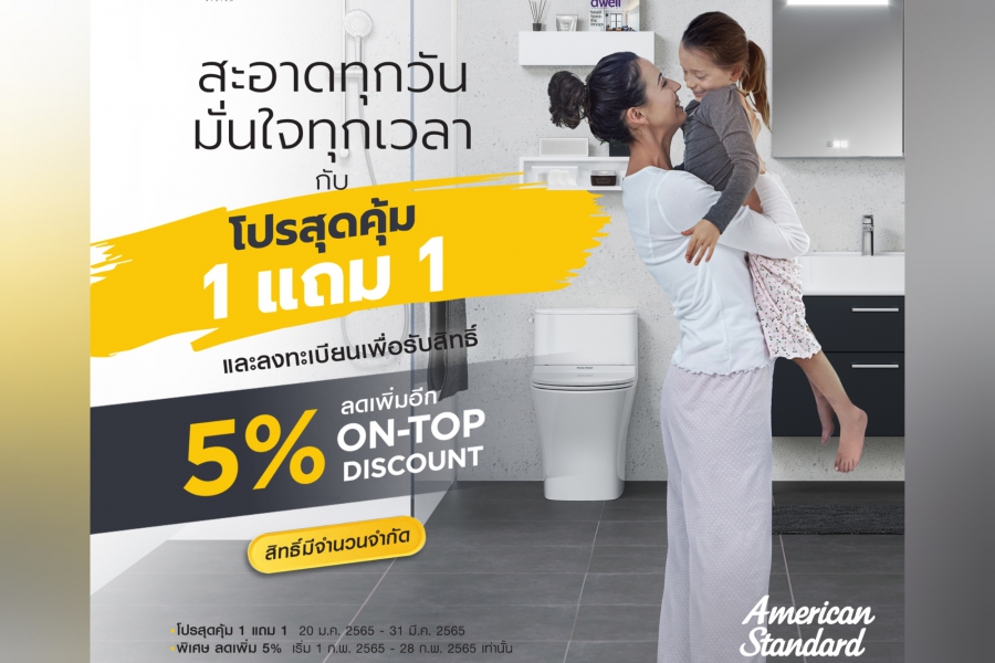 เตรียมตัวช้อป! อเมริกันสแตนดาร์ด จัดโปรสุดคุ้ม 1 แถม 1 จับคู่สุขภัณฑ์รุ่นยอดนิยมพร้อมรับฟรีอ่างล้างหน้าเข้าชุด มอบความสะอาดให้คุณทุกวัน มั่นใจได้ในทุกเวลา