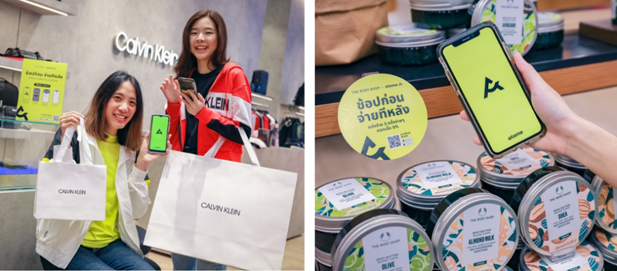 มาสัมผัสประสบการณ์การช้อปรูปแบบใหม่ ที่สะดวก รวดเร็ว ปลอดภัย ได้ที่หน้าร้าน Calvin Klein Jeans, GUESS, MLB และ The Body Shop ทุกสาขา และช้อปออนไลน์ได้ที่ guess.co.th, thebodyshop.co.th พร้อมรับสิทธิพิเศษได้ง่ายๆ เพียงดาวน์โหลดแอปพลิเคชัน ATOME และลงทะเบียนสมัครสมาชิก จากนั้นสามารถเลือกชำระกับ ATOME ที่หน้าตัวเลือกการชำระเงิน บนแอปพลิเคชันมือถือได้เลย
