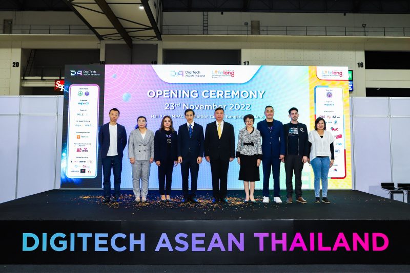 ภาครัฐ-เอกชน นำโดย กระทรวงดิจิทัลเพื่อเศรษฐกิจและสังคม, กระทรวงการอุดมศึกษา วิทยาศาสตร์ วิจัย และนวัตกรรม, อิมแพ็ค และพันธมิตรธุรกิจ ร่วมทำพิธีเปิดงานแสดงสินค้า ดิจิเทค อาเซียน ไทยแลนด์ 2022 หรืองานแสดงสินค้าและสัมมนาด้านเทคโนโลยีและดิจิทัลแห่งอาเซียน และ ไทยแลนด์ ไลฟ์ลอง เลิร์นนิ่ง แอนด์ เอดยุเคชั่น เอ็กซ์โป มหกรรมการเรียนรู้เพื่อพัฒนาทักษะและอาชีพอย่างยั่งยืน ถือเป็น 2 งานใหญ่ครอบคลุมธุรกิจดิจิทัลและสนับสนุนการเรียนรู้พัฒนาทักษะแห่งอนาคต จัดขึ้นระหว่างวันที่ 23-25 พฤศจิกายน 2565 ณ อาคาร 7-8 อิมแพ็ค เมืองทองธานี คาดมีผู้สนใจจากองค์กร หน่วยงาน ด้านดิจิทัลและการศึกษาเข้าร่วมงานกว่า 20,000 ราย