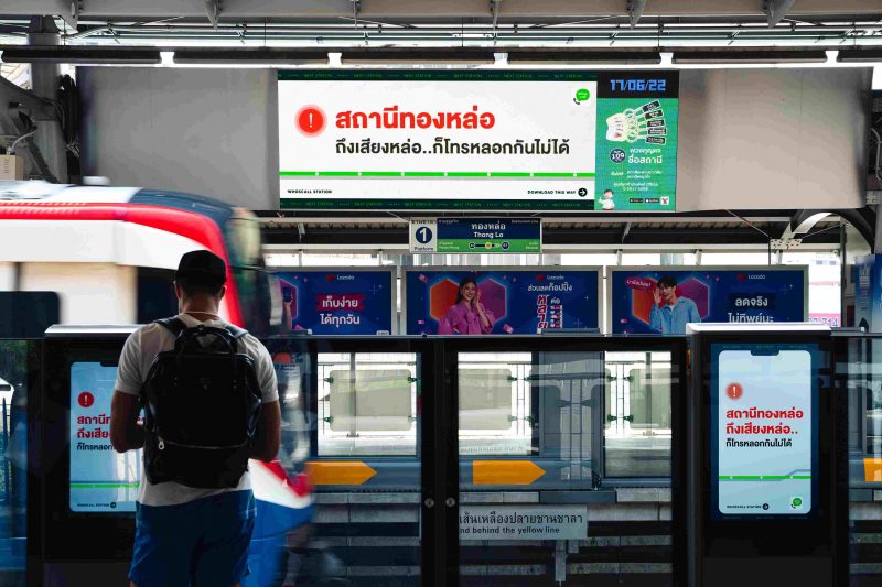 แคมเปญ “Whoscall The Safety Station” ชูกลยุทธ์การสื่อสารการตลาดสุดสตั๊นท์เอาให้งงกันทั้งสถานีรถไฟฟ้าบีทีเอส (BTS) เมื่อเป้าคือการเตือนให้คนไทยรู้เท่าทันมิจฉาชีพ Whoscall ได้เปลี่ยนเสียงประกาศแจ้งสถานีที่คุ้นเคยให้เป็นเสียงประกาศเวอร์ชั่นใหม่ที่สะดุดหูเตือนผู้โดยสารให้ระวังมิจฉาชีพ ซึ่งเสียงประกาศของแต่ละสถานีและป้ายดิจิทัลบนชานชาลายังเปลี่ยนตามโลเคชั่นจริงไม่ซ้ำกัน ทั้งหมด 24 สถานีทั่วกรุงเทพฯ เพื่อผสมผสานให้เข้ากับไลฟ์สไตล์ของชาวไทย เช่น “รถไฟขบวนนี้สายสุขุมวิท สถานีต่อไป อาจเป็น…สายมิจฉาชีพ โปรดสังเกตเบอร์ก่อนรับสายว่าใครโทรมา” “สถานีต่อไปหมอชิตกรุณาแยกให้ออกเบอร์มิตรหรือเบอร์มิจฉาชีพ” “สถานีสนามกีฬาแห่งชาติ ทั้งชาติจะปลอดภัยจากแก๊งค์คอลเซ็นเตอร์” (https://youtu.be/-1iMy_Zm-gA)